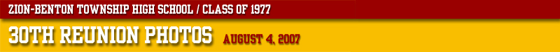 |  1. Alex and Alison Flores 2. Kevin Robinson, Rhonda Dutton, Dawn Schumaker, and Debbie Grissom 3. Kim Loetz, Jeff Hancock, and Rob Spiziri 4. Kathy Nolen and Husband, and Nancy Burkey 5. Kathy Menges and Gretchen Cook 6. Kathy (Cooper) and Dick Bienapfl 7. Jeff and Debbie Gilmore 8. Donna (Hogan) Hancock and Terry Howell 9. Chuck Marqui and Scott Studebaker 10. Kirk Rzpecki and Kathy Cooper 11. Bob McFarland and Cindy Richards 12. Bob Higginbottom, Tammy Minor, Kirk Rzepecki, and Jeff Hancock 13. Scott Studebaker, Connie Osbirn, and Berni Gross 14. Sally (Johnson) & Dave Sandine, Bob Higginbottom 15. Robert and Trisha Lewis 16. Pam Wickersheim, Dennis Ranta 17. On the Dance Floor #1 18. On the Dance Floor #2 19. Line Dancing 20. Kirk Rzpecki, Rhonda Dutton, Jackie Hiatt, Dave Whiteside 21. "The Jeffs" — Jeff Davis, Jeff Boyd, Jeff Hancock, Jeff Swim, Jeff Gilmore 22. Tonia Peters, Debbie Rendall, Allen Jaworek 23. Bob Higginbottom, Rhonda Dutton 24. Bill Haines, Floy Darus, Bob Higginbottom 25. Barney McLinn, Bill Haines 26. Barney McLinn, Berni Gross 27. Bob Higginbottom, Sandy Darus, Patrick Stahl, Floy Darus, Bill Haines, Barney McLinn 28. Palm Tree and Zee Bee Artwork of Denise DeVoe 29. Renee Bosner and Wendy Mintern 30. Sheryl Goodwin and Linn Lund 31. Tanya McBride, Deb Grissom, Tammy Cramer, Don Paulson, Gina Smith 32. Hula Girl Artwork by Denise DeVoe 33. Marti Good, Scott Studebaker, Sheryl Goodwin 34. Chris Rukstales and Donna (Hogan) Hancock 35. Lisa Weidner, Toni Pavletic, Esther Luna 36. Gretchen Cook, Kathy Menges, Lori Dreyer, Kerry Seaton 37. Carrie Kluender and John Hucker 38. Larissa Leech, Michelle Linne, Colleen Gobell 39. Cheryl Kness, Debbie Rendall, Carrie Kluender 40. Chris Rukstales, Debbie Rendall 41. Chuck Marqui and Guest 42. Mr. and Mrs. Dennis Langley 43. Bertha Myles, Yolanda Farrell, and Christina Espinosa 44. Debby McLin and Connie Osbirn 45. Mr. and Mrs. Dave Philyaw 46. Lauren Smith, Scott Studebaker, Bertha Myles, and Yolanda Farrell 47. Class of 1977 30th Reunion Group Photo |